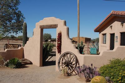 Die 17 Zimmer sind hier verschiedene, komfortable Holzhäuser im Westernstil und heißen zum Beispiel “Post Office” oder “Bordello”. Zwei Schaukelstühle auf der Holzveranda vor der Tür. Von außen betrachtet mögen die Zimmer eher einfach erscheinen, innen erwarten die Gäste Suiten mit unterschiedlichstem Design, die keinen Wunsch nach Komfort offen lassen. “Eigentlich war ich bei meinem Urlaub 1999 nach Arizona gekommen um Bisons zu sehen, statt dessen traf ich auf den Apachen Joe Sand, der mich zum Horseshoe Canyon mitnahm, “erzählt Stenger mit leuchtenden Augen von seiner ersten Begegnung mit “der echten Verkörperung von Winnetou”. Die neue Freundschaft brachte den Unternehmer immer wieder nach Arizona und bei einer dieser Begegnungen traf er auf das 110 Hektar große Land auf historischem Apachenboden und kaufte es für sich und für andere Städter, die ebenso wie er von der Weite der Sonora Wüste begeistert sind.