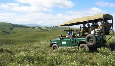 Da es pro Tag immer zwei „Game Drives“, so heisst die Safari hier, stattfinden, geht’s gleich früh morgens los. Um 5.30 Uhr reist uns der Wake-up- Call aus den Träumen und um 6 Uhr ist dann die Abfahrt. In die robusten Landrover passen maximal 9 Personen, die hier über Stock und Stein gefahren werden. Da es so früh morgens noch ziemlich kühl und neblig ist, bekommen alle Gäste einen Poncho mit Kapuze, der gegen die Regentropfen des Taus schützt. Innen ist es mit einem Fleece gefüttert und wirkt dadurch wie eine wasserfeste Decke. Unser Ranger Austin, erklärt uns gleich zu Anfang wie wir uns zu verhalten haben: also nicht im Wagen aufstehen, den Poncho nicht versehentlich raushängen lassen und vor allem immer ruhig bleiben. Und immer Respekt vor den Tieren haben, denn wir Menschen sind hier nur Besucher und müssen froh sein, dass wir sie bestaunen dürfen.