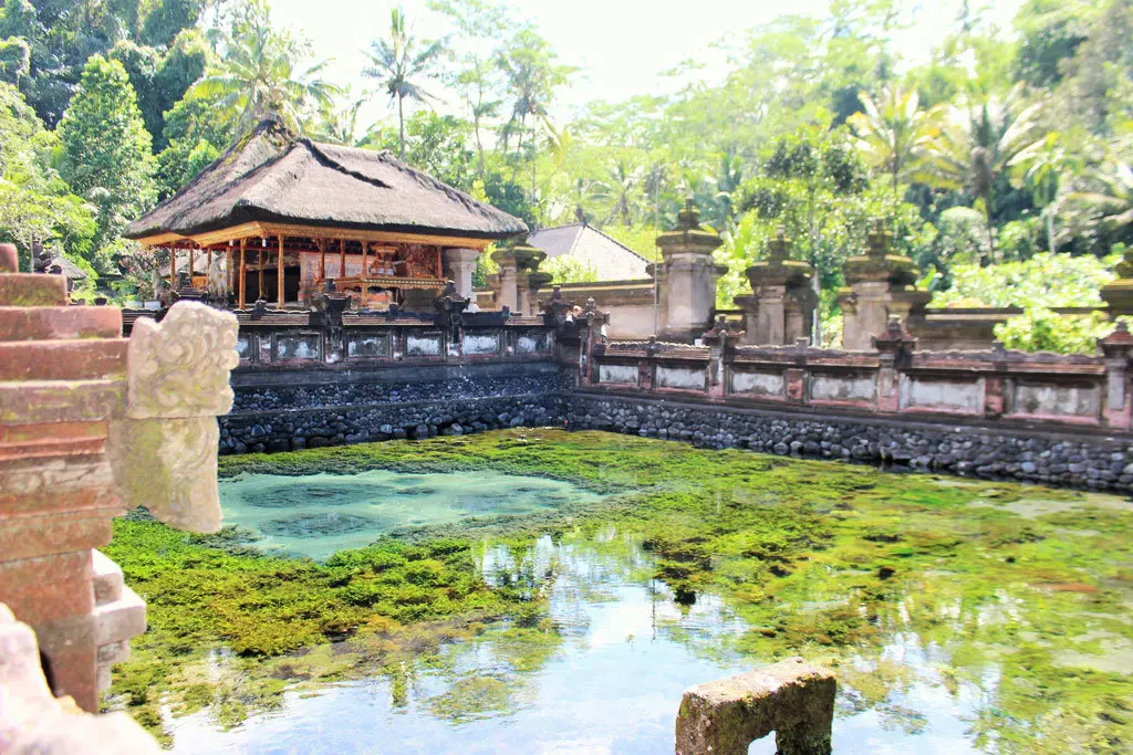 Mit unsrem Taxifahrer Kadek besuchen wir einen ganz besonderen Tempel. Der Pura Tirta Empul ist einer von Balis heiligsten und wichtigsten Tempelanlagen, er gehört zu den neun Staatstempeln. Im Zentrum der Insel an der Quelle des Flusses Pakrisan gelegen, ist er vor allem wegen des heiligen Quellwassers bekannt, das dort zu Tage tritt. Hinduistische Gläubige kommen regelmäßig hierher um sich zu reinigen und von Krankheiten und sonstigen Problemen zu befreien.