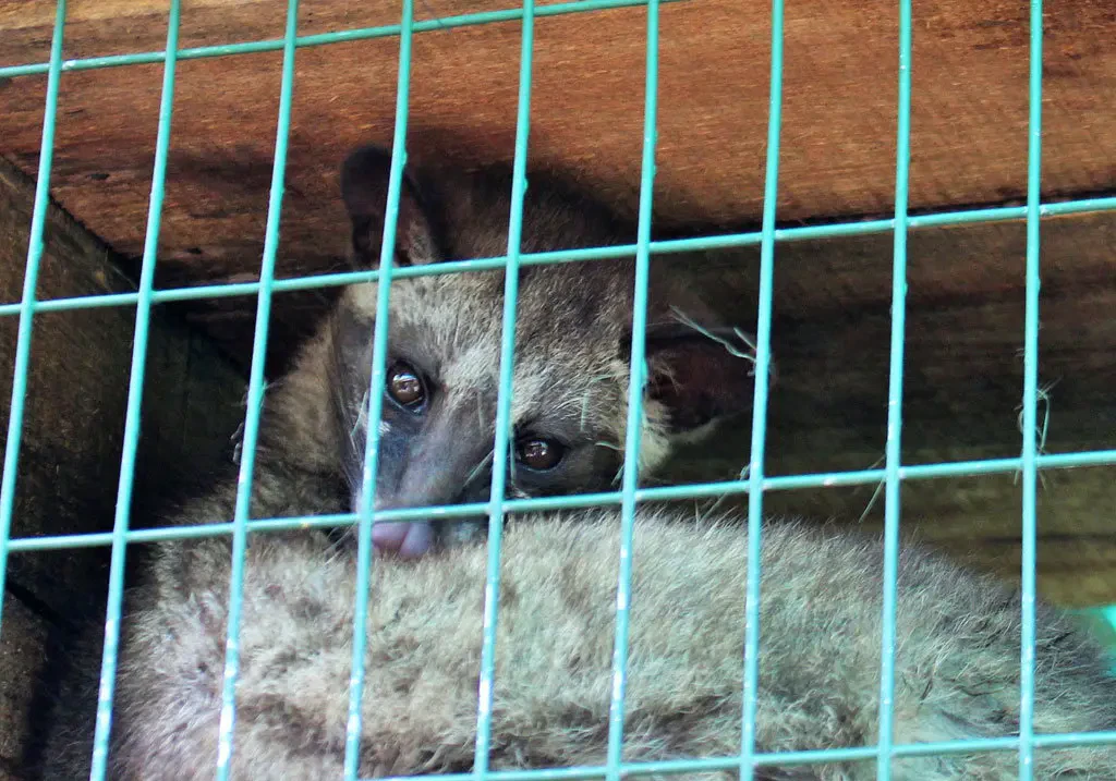 Wir hatten schon einiges über den Kopi Luwak gehört. Der eigentlichen Produzenten des Kaffees sind nämlich die Luwaks (Schleichkatzen). Die Tiere sind nachtaktiv und bei unserem Besuch liegen sie nur faul in einem Nest im Käfig. Ihr Lieblingsessen sind Kaffeekirschen und zwar nur die besten. Von den Kaffeekirschen kann der Luwak nur das Fruchtfleisch verdauen, den Rest, also die Kaffebohnen scheiden die Luwaks aus.