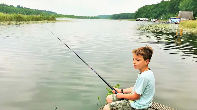 Wir treffen direkt am Angelsteg im Ferienpark Mirow René und Mario. Die beiden sind echte Profis und weisen die Kids in die spannende Welt des Angelns ein. Von Grund auf wird alles verständlich erklärt, sogar die Angeln werden nach Anleitung von den Kids selbst zusammengebaut. „Schau mal, Mama, ich habe schon die Made dran!“ ruft Paul und schaut gespannt auf das Wasser. Richtig toll und unkompliziert ist, dass die komplette Ausrüstung samt Angel, Köder und Angelkarte gestellt wird und die kindgerechten Experten-Tipps vom Profi sind natürlich unbezahlbar. Ich befürchte aber, dass es langweilig werden könnte, dass wir nun ewig auf einen Fang warten müssen, aber weit gefehlt! „Ich hab einen!“ ruft Paul völlig außer sich. Mario eilt herbei und hilft den Fang einzuholen. Es ist tatsächlich ein kleiner Barsch. Er ist noch zu klein und muss deswegen wieder ins Wasser zurück, erklärt Mario und zeigt, wie man den Fisch für ein Foto anfassen darf. Ein verantwortungsvoller Umgang mit Natur und Tieren wird hier ganz spielerisch vermittelt. Und meine Sorge war unbegründet, Fische gibt es in der Mecklenburgischen Kleinseenplatte viele, neben Barsch, werden auch Rotfeder und der Plötz häufig gefangen, mit Glück ist auch mal ein Hecht oder ein Aal dabei. Paul angelt tatsächlich 10 Fische, aber leider müssen alle zurück ins Wasser, für den Grill ist keiner dabei, aber es hat riesigen Spaß gemacht. Paul erzählt zuhause allen von seinem Anglerglück.
