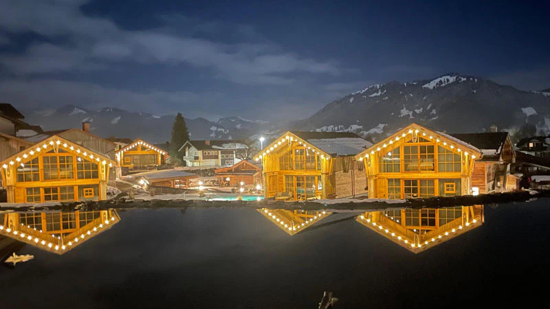 Burgberg ist seit Generationen die Heimat von Albert Gilb und Sonja, den Besitzern der Alpzitt Chalets, dass bereits 2018 an der alten Sägemühle eröffnet wurde. Seitdem stehen 15 Chalets sowie 5 Chalet-Ferienwohnungen auf dem Gelände und laden Gäse zum Übernachten ein. Im Herbst 2025 wurde eine neue kleine Spa-Area eröffnet und sechs neue Spa-Chalets gebaut. Drei Chalets liegen direkt am Wasser mit Steg, zwei haben einen privaten Garten am Natursee, ein Panorama-Chalet liegt über dem Spa-Gebäude. Wir werden herzlich empfangen und zu unserem Chalet „Eiche“ gebracht. Melanie zeigt uns das Chalet. „Hier ist eure eigene, kleine Wellnessoase mit der finnischen Sauna, Dusche, Relaxliege und dem Hot-Pot der auf der Terrasse steht“, sagt sie. „Ich bringe Euch gleich noch Holz, dann könnt‘ ihr auch den Kachelofen anheizen“. Das klingt wunderbar und wir freuen uns schon auf kuschelige Stunden vor dem Feuerchen. „Und für das Frühstück wählt ihr einfach über den QR-Code was ihr möchtet und dann wird euch der Korb morgen früh ins Chalet gebracht“, erklärt Melanie. „Aber jetzt kommt erstmal an und das Abendessen wird heute für euch in unserem Restaurant Genusswerk serviert“, ergänzt sie. Das ist doch mal ein schöner Empfang.