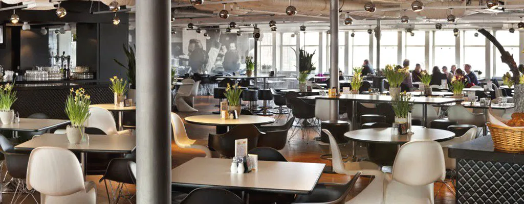 Innen besticht der loft-artige Speisesaal mit authentischem Dekor und perfektem Ausblick auf den Hafen. Wir bekommen einen Tisch am Fenster. Vor allem viele Familien sind da. Dieses Wochenende sind wir ja einmal nur mit unserem Jüngsten verreist und fallen als Kleinfamilie fast auf. Die Niederländer scheinen alle mindestens zwei, aber eigentlich eher mehr Kinder zu haben. Kein Wunder, überall wo man hinkommt, fällt auf, wie kinderfreundlich alle sind. Paul bekommt Stifte und ein die Kinder-Speise-Karte als Tischset zum Ausmalen. Wir genießen die wunderbare Atmosphäre und dann vor allem das leckere Essen. Hier könnten wir ewig sitzen. Oder gleich dableiben? Im Hotel New York kann man übrigens auch sehr stilvoll und nostalgisch übernachten.
