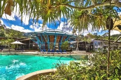 Wer den Hollywood-Blockbuster „Jurrassic Park“ gesehen hat, bekommt bei der Ankunft im Kingfisherbay Resort auf Fraser Island erst mal große Augen. Hier sieht es genauso aus wie im Film! Eine großzügige Eingangshalle mitten im Dschungel, in der Begrüßungs-Cocktails gereicht werden. So weit, so beruhigend. Doch dann fragt man, warum die Hotel-Anlage von einem großen Zaun umgeben ist, und die Antwort eines lachenden Mitarbeiters lautet: „Damit Sie sicher sind.“ Oh. Aha. Doch zum Gefährlichen später, zunächst schauen wir uns das Resort an.