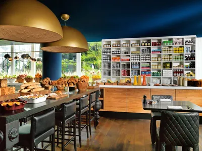 Im Fall des „Andaz“ tun sich für uns eine komplett neue Welten auf. Von außen wirkt das Fünfsterne-Haus mit seinen Backstein-Mauern zurückhaltend-schlicht. Innen aber tauchen wir in eine Art Alice im Wonderland-Ambiente ein. In der Lobby schweben über den runden Tischen der Rezeptionisten überdimensionale Glocken aus weißem Porzellan unter bunten Neonobjekten; hinter futuristischen Drehsesseln in Feuerrot läuft auf einem meterhohen Bildschirm moderne Videokunst aus der hauseigenen Sammlung in Endlosschleife. Im Aufzug erinnert ein XXL-Foto mit Regalen voll antiquarischer Bücher an die Vergangenheit des Gebäudes, das bis zum Umbau eine öffentliche Bibliothek war. Jede Etage zieren überlebensgroße „Prinzen der verlorenen Träume“, die Vorübergehenden etwas zuzurufen scheinen. Über dem Bett unseres Zimmers schwebt eine Mischung aus Suppenlöffel und Fisch an der Wand; die Toilette ist mit einer Collage aus alten Bildern und Texten tapeziert. Als Badezimmer fungieren ein freistehender Frisiertisch aus Beton sowie eine separate nachtschwarze Dusche. Insgesamt 122 Zimmer, darunter fünf Suiten, durfte der Produktdesigner Marcel Wanders so phantasievoll gestalten, dass sich Erwachsene wie Kinder gleichermaßen wohlfühlen, obwohl das Andaz kein ausgewiesenes Familien-Hotel ist. Zum Sieger nach Punkten außer dem außergewöhnlichen Styling, superfreundlichen Angestellten und der Top-Lage in Fußmarschentfernung zu allen Sehenswürdigkeiten küren wir das appetitliche Frühstücksbüffet mit Bircher Müsli, frischen Früchten, frisch gebackenen Waffeln und lauwarmem Beeren-Crumble, dessen Streuseln mit Pistazien gespickt sind. Als wir uns endlich von diesen Leckereien loseisen können, sind wir so satt, dass uns irgendeine Nahrungsaufnahme in den nächsten Stunden unmöglich erscheint.