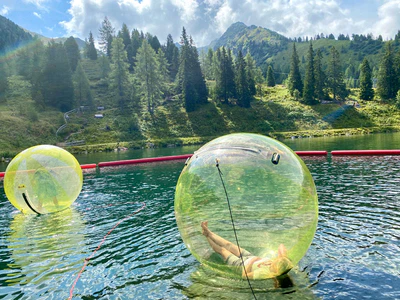2. Übers Wasser laufen: Water Zorbing am SchafsinnTeich