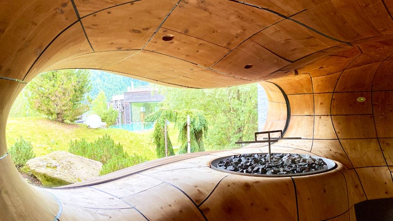 So viele schöne Entspannungsinseln und Rückzugsorte! Entspannung für die Augen und die Seele! Zum Beispiel das neue Aquasensario mit animierter Wasserinstallation: Rund um den Glaszylinder mit der sichtbar gemachten Jungbrunn-Quelle, die hier tatsächlich aus dem Fels unter dem Hotel sprudelt, schmiegt sich ein weiterer Ruhebereich, Quellenruh, zum Entschleunigen und Schweben.