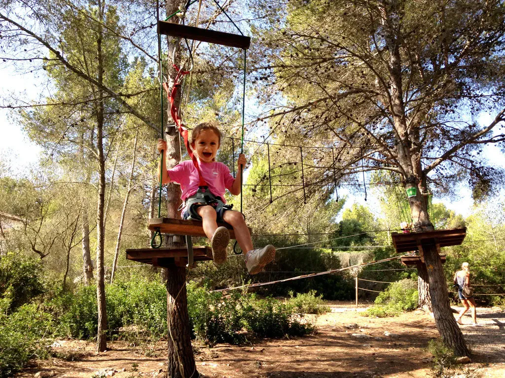 Wem der Sinn nach Action steht, hangelt sich im Jungle Parc von Baum zu Baum. Der in Santa Ponsa im Südwesten Mallorcas gelegene Klettergarten verfügt über verschiedene Parcours mit unterschiedlichen Schwierigkeitsgraden. Während sich kleine Abenteurer (4 bis 11 Jahre, 14 €) bei der „Piratentour“ über wackelige Wippen, Hängebrücken und Seilrutschen wagen, arbeiten sich die „Großen“ (18 €) in bis zu 10 Metern Höhe durchs Dickicht.