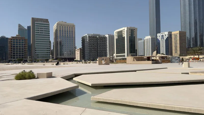Der Reem Central Park wird eigentlich nur von Einheimischen genutzt, denn er liegt auf der wenig touristischen Al Reem Island – ein echter Geheimtipp! Der Park bietet jede Menge Unterhaltung für alle Geschmäcker: Es gibt einen kleinen Strand, einen Spielplatz für kleinere Kinder, Skate- und Basketballanlagen für größere. Außerdem schöne Spazierwege mit Wasserläufen und kleinen Becken. In einem beobachten wir, wie eine künstliche Strömung das Wasser im Kreis dreht, ein anderes durchqueren wir über mehrere Betonsteine hüpfend.