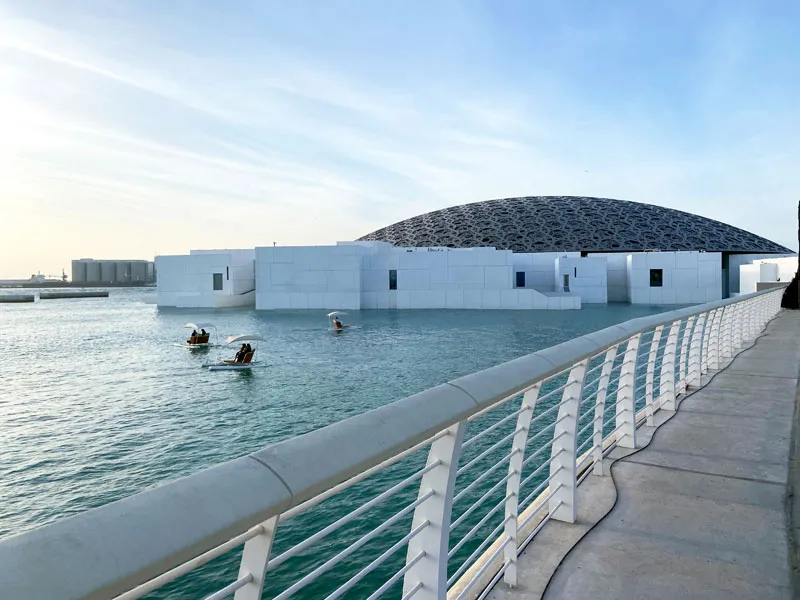 Wir enden dort, wo wir angefangen haben: im Saadiyat Cultural District. Dort gibt es nämlich auch noch das Louvre Abu Dhabi. Schon von weitem sieht es toll aus mit seiner gigantischen, halbrunden Kuppel. Das ganze Spektrum dieses architektonischen Meisterwerks zeigt sich aber erst, wenn man darunter steht: Wie die Sonne durch die sternförmigen Öffnungen der acht Stahl- und Aluminiumschichten fällt, ist beinahe überirdisch schön! Während Jack und ich staunen, springt Leo ausgelassen von einem tanzenden Lichtpunkt zum nächsten.